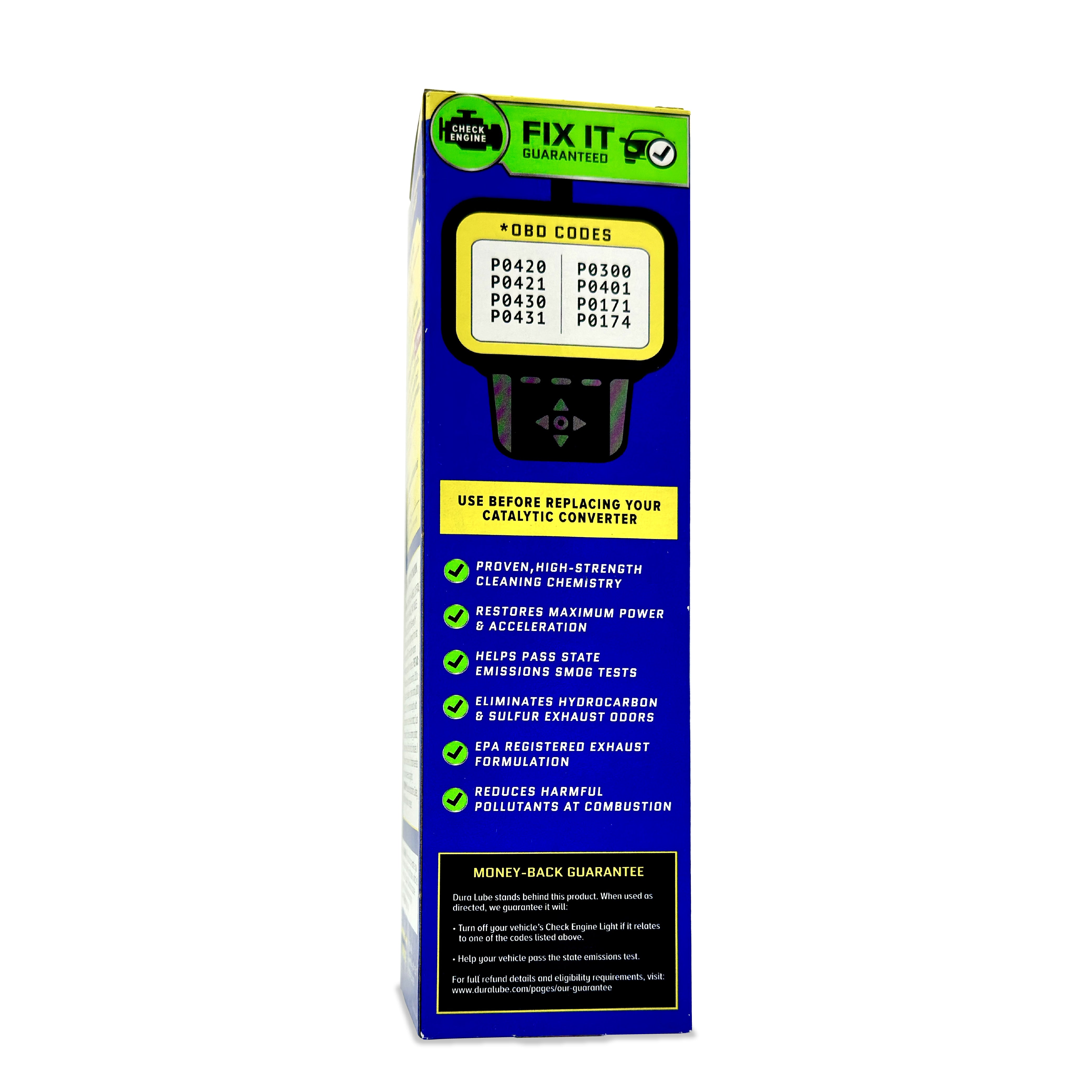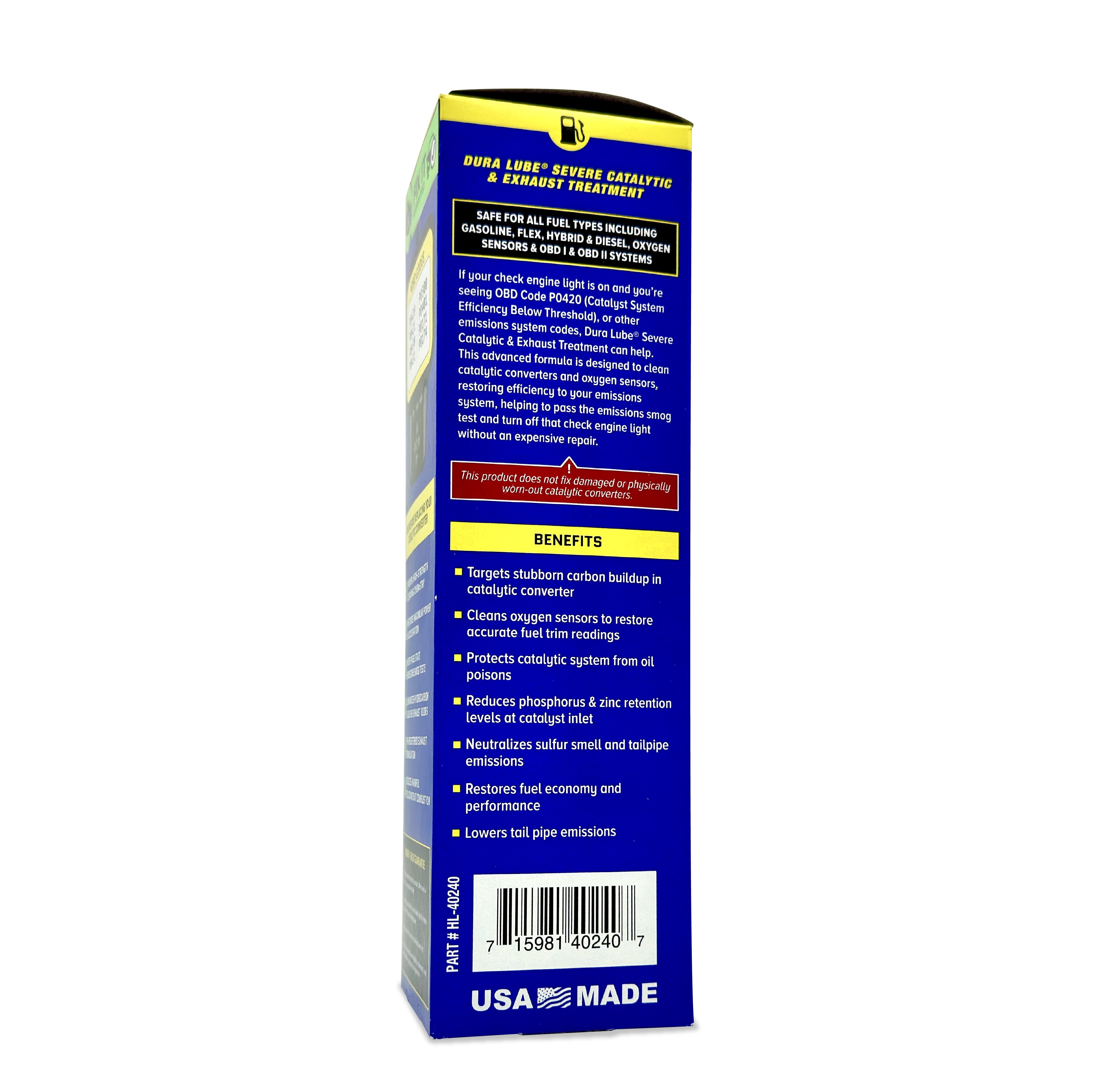 Helps pass emissions control test. Code p0420 clearer. Formulated to protect and treat the Catalytic Converter & Exhaust System from oil poisons. This will aid in reducing the carbon footprint of your vehicle and improving overall performance; helping to increase fuel efficiency, and protect your converter.